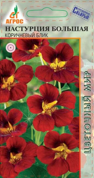 Однолетнее растение с многочисленными побегами. Декоративны не только многочисленные цветки терракотовой окраски с шелковистыми лепестками, но и листья – округлые щитовидные на длинных черешках. Цветки одиночные, диаметром до 5 см с длинным шпорцем. Настурция теплолюбива. Любит рыхлые, влажные почвы и светлые, солнечные места. На богатых почвах бурно растет в ущерб цветению. Поливают обильно в начале роста. Когда начнется цветение, поливы необходимы только при сильном подсыхании почвы, иначе листьев будет много, а цветов мало. На рассаду высевают в апреле. В одно гнездо лучше высевать по 2-3 семечка. При температуре 15-18 °С всходы появляются через 14-20 дней. Каскадную настурцию используют в вертикальном озеленении, для декорирования балконов, беседок, веранд, также выращивают в качестве почвопокровного растения. Листья цветки и недозрелые семена можно употреблять в пищу. Настурция лечит землю от грибных болезней. После нее лучше растут астры и душистый горошек. 150 IV IV-V V-VI 30x30 VI-IX