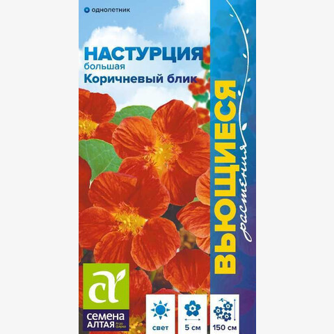 Популярный однолетник, широко используемый в вертикальном озеленении. Растение со стелющимися побегами, достигающими в длину 1,5 м, в плотной посадке скрывающими почву сизоватой листвой. Декоративны не только многочисленные цветки терракотовой окраски с шелковистыми лепестками, но и листья - округлые щитовидные на длинных черешках. Используют для вертикального озеленения в саду, декорирования балконов, беседок, веранд, также выращивают в качестве почвопокровного растения. Тепло- и светолюбивое растение, не выносит даже лёгких заморозков. Предпочитает солнечные или слегка затененные участки на умеренно плодородных влажных почвах без избытка органических удобрений. Перед посевом семена желательно замочить в теплой воде на 24 часа. Посевы в открытый грунт проводят во второй половине мая сразу на постоянное место (по три семечка в лунку). Интервал между лунками 20-30 см, глубина заделки семян – 1,5-2 см. При температуре почвы +20°C всходы появляются на 14-20 день. Для получения более раннего цветения можно посеять семена на рассаду в начале апреля в торфяные горшочки, по 3-4 штуки (пикировку растение не переносит). После прорастания сеянцы переносят в помещение с температурой не выше +18°C, в более теплых условиях растения вытянутся и могут погибнуть. Высаживать рассаду в грунт следует в конце мая – начале июня вместе с торфяными горшочками. До начала цветения настурция нуждается в регулярном поливе и подкормках, затем частоту поливов сокращают. Цветение обильное и продолжительное – с июня до заморозков.