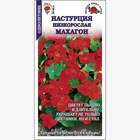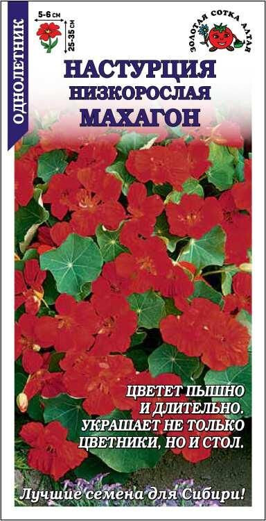 Компактное растение с округлыми листьями, над которыми распускаются махровые и полумахровые бордово-красные цветки. Аромат приятный. Цветение пышное и длительное. Используют для оформления цветников и посадки в контейнеры. Цветы применяют для украшения салатов, листья хороши в холодных закусках, а маринованные бутоны заменяют каперсы.