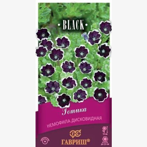 Низкое однолетнее, полустелющееся растение до 10 см высотой. Стебли лежачие, разветвленные. Листья перисто-лопастные, опушенные. Цветки одиночные до 2,5 см в диаметре, расположены в листовых пазухах, черные с белым глазком в центре и белой каймой. Хорошо растут в полутени, но обильное продолжительное цветение возможно только при хорошем солнечном освещении. Предпочитают рыхлую, питательную, водопроницаемую почву, предъявляя повышенные требования к условиям увлажнения. Посев проводят в самые ранние сроки и следят, чтобы почва не пересыхала. Прорастают через две недели. Прореживают на расстоянии 20 см. Для осеннего цветения сеют в июне. Немофила эффектна вблизи водоемов, легко комбинируется с другими растениями и прекрасно смотрится в бордюрах. Ее можно сеять вдоль дорожек и между луковичными и клубнелуковичными растениями. При посадке в контейнеры или висячие корзины образует плотный каскад зелени и цветков, который великолепен на переднем плане композиции.