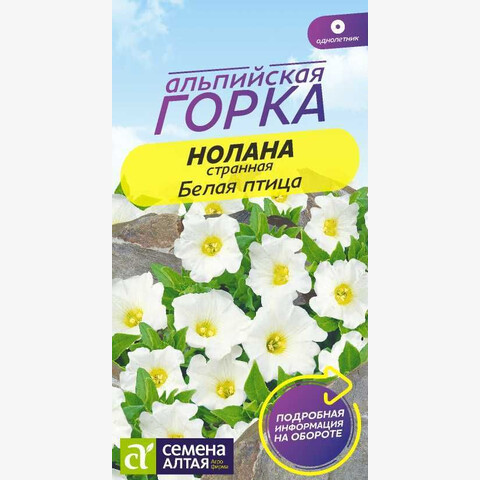 Однолетнее почвопокровное растение высотой около 10 см, иначе называемое чилийским колокольчиком. Ветвистые стелющиеся стебли быстро разрастаются, достигая длины 50-60 см, и способны покрыть за сезон около 1 кв. м. Листья темно-зеленые, цветки белоснежной окраски с желтым центром. Диаметр цветков около 4 см. Можно выращивать в подвесных кашпо, контейнерах и балконных ящиках, в рокариях и на альпийских горках. Светолюбивое, довольно неприхотливое растение. Хорошо растет на слабокислых или нейтральных влагопроницаемых почвах. Подходит для выращивания на бедных каменистых грунтах. Семена на рассаду высевают с середины марта до начала апреля, сеют поверхностно, слегка заделывая легким грунтом. До прорастания поддерживают умеренную влажность почвы. При температуре воздуха +18?C всходы появляются на 7-14 день. Сеянцы содержат при температуре +18?C. В грунт высаживают в конце мая – начале июня, когда минует угроза возвратных заморозков, выдерживая посадочный интервал 25-35 см. Перед высадкой в открытый грунт рассаду закаливают. Молодые растения до цветения следует 2-3 раза подкормить комплексными удобрениями. Сильно вытянувшиеся побеги периодически прищипывают для сохранения формы и лучшего кущения. Цветёт обильно и продолжительно с середины июня до заморозков.
