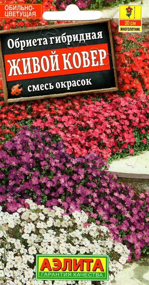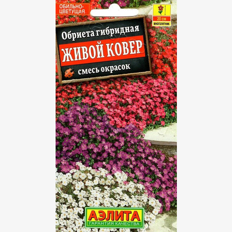Крупноцветковая смесь окрасок популярного почвопокровного растения, создающая в саду яркий и красочный ковер. Формирует привлекательные сизоватые куртинки высотой до 20 см, в пору цветения покрытые цветами так, что почти не видно листвы. Большое достоинство обриеты еще в том, что зимует она с листьями, поэтому декоративна в течение всего сезона. Растения светолюбивые, засухо устойчивые, морозостойкие. Используются в бордюрах, на подпорных стенках и альпийских горках, где они со временем красиво спускаются каскадами по камням.