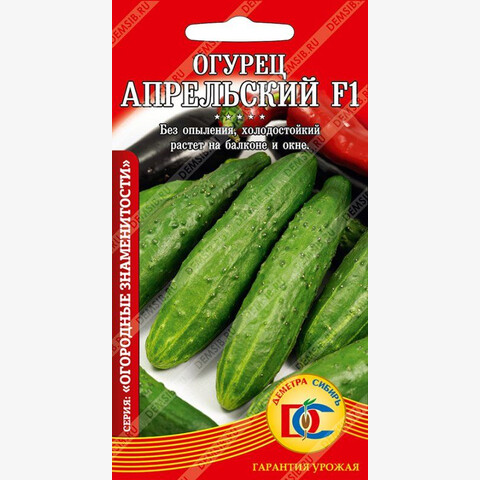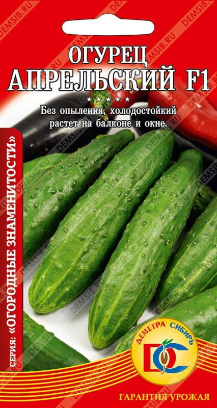 Пригоден для выращивания на балконах и на подоконниках! Апрельский F1 (ТСХА-98) - скороспелый (45-50 дней) партенокарпический гибрид. Растение слабоветвистое, не требует формирования. Зеленец цилиндрический, отличного вкуса, без горечи, не желтеет. Для потребления в свежем и консервированном виде.