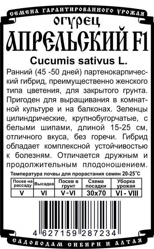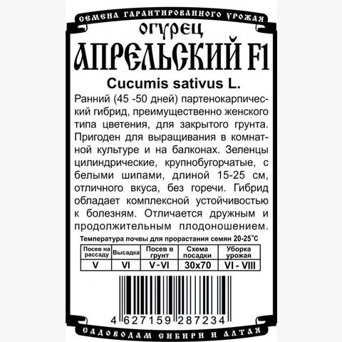 Ранний (45 -50 дней) партенокарпический гибрид, преимущественно женского типа цветения, для закрытого грунта. Пригоден для выращивания в комнатной культуре и на балконах. Зеленец цилиндрический, крупнобугорчатый, с белыми шипами, длиной 15-25 см, отличного вкуса, без горечи. Гибрид обладает комплексной устойчивостью к болезням. Отличается дружным и продолжительным плодоношением.