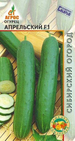 Раннеспелый гибрид для выращивания в теплицах. АПРЕЛЬСКИЙ F1 склонен к партенокарпии, но для лучшего плодообразования целесообразно обеспечить дополнительное опыление. Формирует красивые редкобугорчатые плоды длиной 15- 20 см, массой до 200 г, отличного вкуса и аромата. Гарантирует получение обильного раннего урожая, незаменим для салатов, также пригоден для засолки. Особенности выращивания: рекомендуется подвязка к шпалере и формирование растения. - IV V V 40x120 VII-VIII