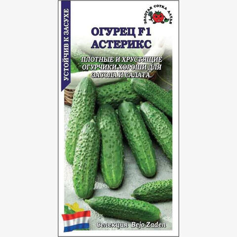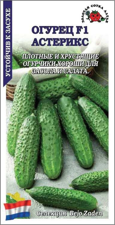 Гибрид ранний, характеризуется стабильной урожайностью и устойчивостью к болезням, а благодаря хорошо развитой корневой системе прекрасно переносит неблагоприятные погодные условия, в том числе засушливые периоды. Растение среднерослое, преимущественно женского типа цветения. Зеленцы цилиндрические, среднего размера, массой 65-90 г, зеленые с полосами, среднебугорчатые, сочные, нежные и ароматные, отличного вкуса, при мариновании и засолке остаются плотными и хрустящими.