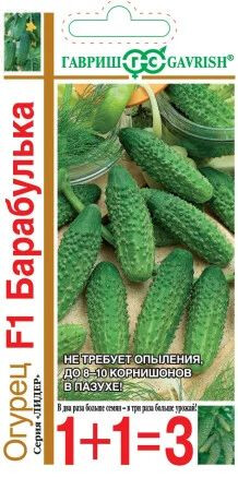 Скороспелый (43-48 дней от всходов до плодоношения) партенокарпический гибрид преимущественно женского типа цветения, предназначен для выращивания в открытом и защищенном грунте, а так же под временными пленочными укрытиями. Посев на рассаду в конце апреля. Высадка в грунт в конце мая – начале июня в фазе 3-4-х настоящих листьев. Посев в открытый грунт проводится в конце мая. Схема посадки 50х50 см. Зеленец длиной 10-12 см, массой 90-100 г, бугорчатый, белошипый, темно-зеленый с белыми полосами до 1/3 плода. Гибрид отличается дружной отдачей урожая благодаря очень большим букетам завязей в узлах на главном побеге (до 8-10 штук). Использование плодов универсальное (в свежем виде, для маринования, засолки). Гибрид относительно устойчив к настоящей и ложной мучнистой росам. Урожайность одного растения 6,0-7,0 кг.