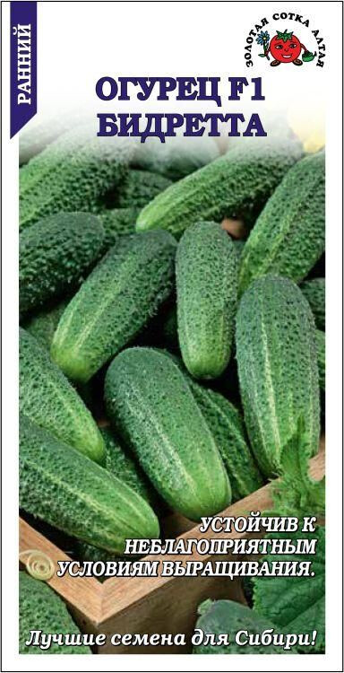 Раннеспелый урожайный гибрид для открытого и защищенного грунта. Растение преимущественно женского типа цветения. Плоды мелкобугорчатые, длиной 10-12 см, хрустящие и сочные, великолепного вкуса, без горечи. Гибрид отличается дружной отдачей урожая, устойчив к болезням и неблагоприятным погодным условиям. Используется в свежем виде, прекрасно подходит для засола и маринования.