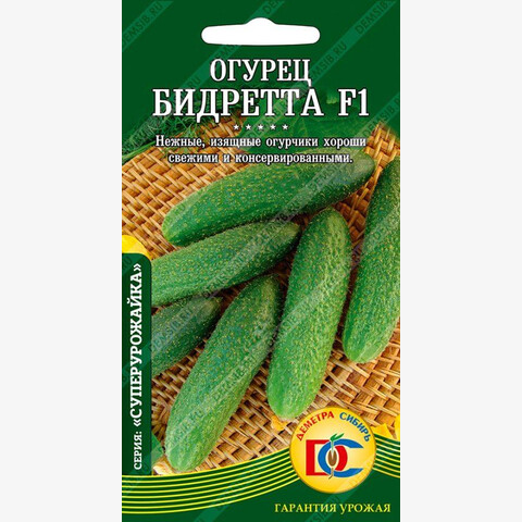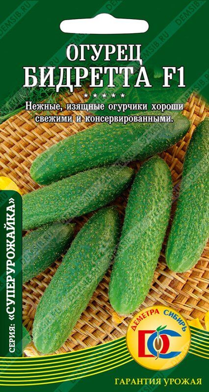 Среднеранний (50-55 дней) гибрид для открытого грунта. Плоды изящные, выровненные, цилиндрической формы, белошипые, зелёного цвета, плотные, без горечи. Ценится за высокие вкусовые качества свежей и консервированной продукции, устойчивость к неблагоприятным погодным условиям и болезням.