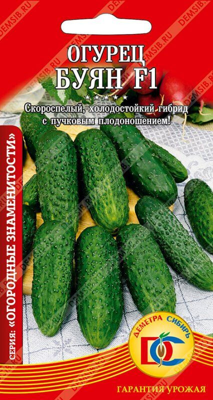 Скороспелый (45-55 дней) партенокарпический гибрид женского типа цветения, для открытого грунта и пленочных теплиц. Растение индетерминантное, среднерослое, среднеплетистое. В узлах формируется по 5-7 завязей. Зеленцы крупнобугорчатые, ярко-зеленые, длиной 8-11 см. с нежной тонкой кожицей, хрустящей мякотью, отличных вкусовых качеств. Характеризуется обильным и растянутым плодоношением в широком температурном диапазоне. Используется в свежем виде, для засолки и консервирования.