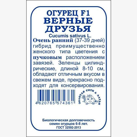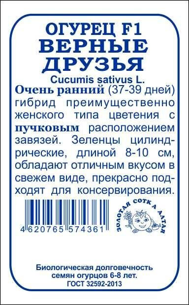 Гибрид очень ранний, холодостойкий, обильно плодоносит при любых условиях выращивания, устойчив к целому комплексу заболеваний. От всходов до плодоношения 37-39дней. Растение слабоветвистое, преимущественно женского типа цветения с пучковым заложением завязей. Зеленцы овальной формы, редко- и крупнобугорчатые, длиной 8-11 см, зеленые со светлыми полосами, сочные и хрустящие, обладают отличным вкусом в свежем виде, прекрасно подходят для консервирования.