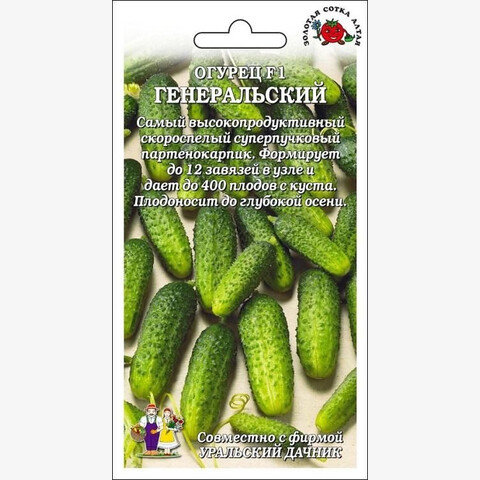 скороспелый партенокарпический суперпучковый гибрид,дающий невероятно высокий урожай товарных корнишонов в любых условиях выращивания, в том числе глубокой осенью, благодаря холодостойкости, теневыносливости, генетической защите практически от всех болезней и способности быстро приспосабливаться к пониженным ночным температурам. Растения женского типа цветения, сильнорослые, с саморегулируемым типов ветвления, при котором отрастание боковых побегов сдерживается до уборки большей части первого урожая. В дальнейшем же боковые побеги начинают расти быстрее, активнее. Таким образом, саморегулируемый тип ветвления-это одновременно и залог масированной отдачи первого урожая без необходимости формировать растения, и увеличение потенциального периода плодоношения за счет хорошего ветвления. В узлах формируется до 12 завязей. Зеленцы очень красивые, аккуратненькие, длиной 10-12 см, плотные, хрустящие и ароматные. Вкусовые качества свежей и консервированной продукции очень высокие.