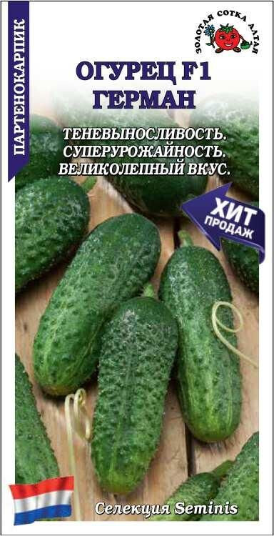 Суперраннее созревание и чрезвычайно высокая урожайность сделали этот партенокарпический теневыносливый гибрид самым популярным в России! Растение среднерослое, женского типа цветения, в каждом узле формирует до 6-7 завязей. Зеленцы ровненькие, темно-зеленые, крупнобугорчатые, длиной 10-12 см, сочные, хрустящие, великолепного вкуса, без горечи. Гибрид используется в свежем виде, для консервирования и маринования,не теряя при этом вкусовых качеств и плотности.