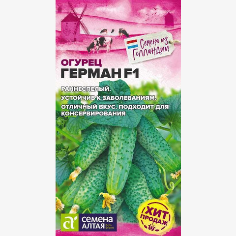 Раннеспелый партенокарпический высокоурожайный гибрид с пучковым заложением завязей. Предназначен для выращивания в открытом и защищенном грунте. Зеленец цилиндрический, темно-зеленый, бугорчатый, массой 70-90 г, длиной 10-11 см. При достаточном питании в пазухе листа образуется до 6-7 плодов отличного вкуса, без горечи. Прекрасно подойдут для засолки, маринования и употребления в свежем виде. Гибрид устойчив к комплексу заболеваний. Место посадки: предпочитает плодородные рыхлые нейтральные почвы. Размещают после капусты, лука, бобовых. Не рекомендуется сеять после других растений семейства тыквенных (тыква, огурец, кабачок, арбуз) Освещение: обильное, переносит легкое затенение Предпосевная подготовка: семена замачивают в 0,5% растворе марганцовки на 15 минут. Допускается предварительное проращивание во влажной ткани или посев сухими семенами без подготовки. Инкрустированные (цветные) семена сеют сухим способом, без замачивания и подготовки Сроки посева: на рассаду за 20-25 дней до высадки (апрель-май), в открытый грунт после прогревания почвы до 15..18°С на глубине 15 см (май-июнь) Посев на рассаду: семена раскладывают на выровненный уплотненный теплый очень влажный грунт в рассадные ящики или индивидуальные емкости объемом 0,5 л. Присыпают слоем почвы 0,8-1 см и хорошо уплотняют, аккуратно поливают теплой водой, накрывают пленкой. Пророщенные семена присыпают рыхлым грунтом без уплотнения Посев в грунт: высевают, когда почва прогреется до 15-20°С. Семена раскладывают на уплотненной и хорошо увлажненной почве, заделывают землей на глубину 1,5-2,0 см, хорошо увлажняют, уплотняют и накрывают пленкой Пикировка/перевалка: в остекленные или пленочные теплицы, тоннели высаживают 20-25-дневную рассаду, имеющую 3-5 настоящих листьев. Схема посадки 70х40 см с использованием шпалер Уход: почва под растениями всегда должна оставаться увлажненной. Подкормки проводят при наличии симптомов дефицитов питания. При выращивании в теплице необходимо обеспечивать проветривание. Не требуют формировки