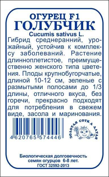 Среднеранний гибрид салатного и консервного назначения. Растение длинноплетистое, преимущественно женского типа цветения. Зеленцы веретеновидные, длиной 10-12 см, крупнобугорчатые, зеленые с размытыми полосами до 1/3 длины, отличного вкуса, без горечи, прекрасно подходят для свежего потребления, засола и маринования. Гибрид характеризуется устойчивостью к заболеваниям, стабильной урожайностью, высокими вкусовыми и товарными качествами плодов в стадии корнишона и зеленца.