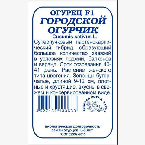 • Гибрид суперпучковый, партенокарпический, относится к группе огурцов, специально созданных для балконов, лоджий и веранд, характеризуется некрупными листьями и короткими междоузлиями. Срок созревания 40-41 день. Растение женского типа цветения, сильноветвистое. Плоды красивые, бугорчатые, длиной 9-12 см, плотные и хрустящие, не перерастают, великолепны в салатах и засолке. Гибрид отлично подходит для открытого грунта и парников, особенно хорош в теплицах.