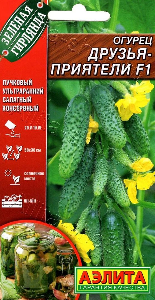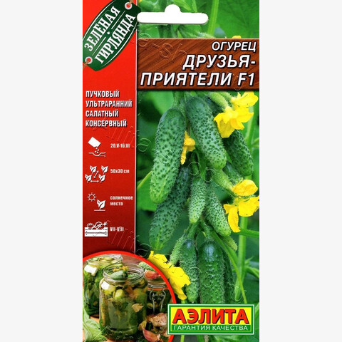 Ультраранний партенокарпический гибрид. Завязи закладывает пучками, как бананы, по 5-8 штук. От всходов до начала плодоношения проходит всего 38-40 дней. Урожайность высокая: в пленочных теплицах – 13-18 кг/м 2 , в открытом грунте – 7-8 кг/м 2 . Короткие, хрустящие, белошипые огурчики массой 80-100 г аппетитны в свежих салатах и подходят для консервирования.