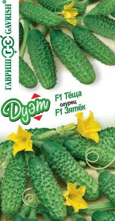 Огурец Теща: Скороспелый (45-48 дней) партенокарпический гибрид. Зеленец длиной 11-13 см, массой 100-120 г, бугорчатый, бурошипый, без горечи. В пазухе листа образуется до 3-4-х завязей. Весь сезон плавно отдает урожай. Имеет высокую степень устойчивости к заболеваниям, холоду, перепаду температуры. Используют в свежем виде, для засолки и маринования.