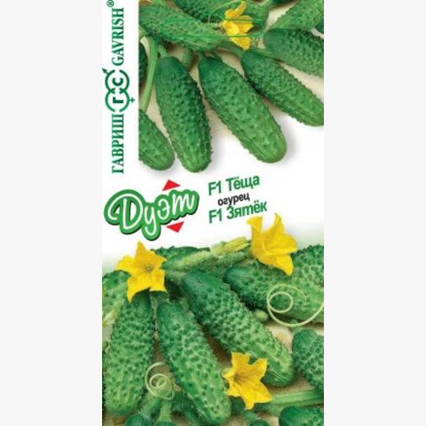Огурец Зятек: Скороспелый (45-48 дней) партенокарпический гибрид. Зеленец частобугорчатый, белошипый, без горечи, длиной 10-12 см, массой 90-100 г. Окраска плода темно-зеленая со светлыми полосами. В пазухе листьев образуется 2-4 завязи (до 6-8 штук). Имеет мощную корневую систему, интенсивный рост, отдает урожай до конца сентября даже в неблагоприятных условиях, очень вынослив. Ценится за вкусные корнишоны и пикули, пригодные для баночного консервирования.