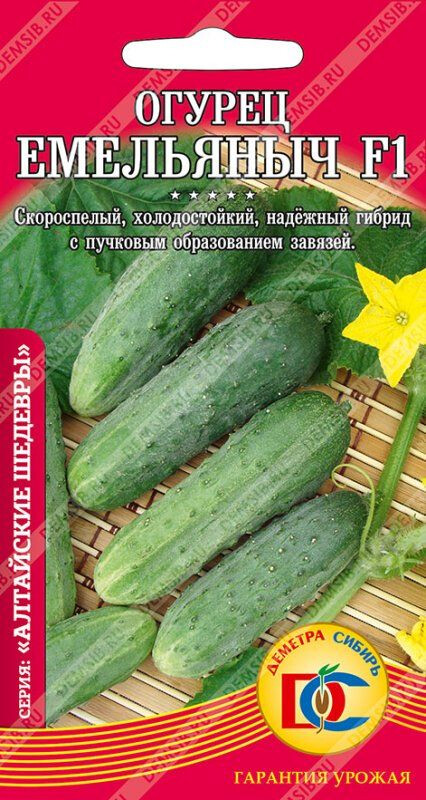 Лучший скороспелый (40-45 дней) урожайный, салатный гибрид, для закрытого грунта и временных весенних укрытий. Растения индетерминантные, сильнорослые, средневетвистые, преимущественно женского типа цветения, с пучковым заложением завязей. Зеленец веретеновидной формы, темно-зеленый с короткими светлыми полосами, среднебугорчатый, с легким белым опушением, длиной 12-16см, массой 110-140 г. Вкусовые качества отличные. Устойчив к вирусу огуречной мозаики, оливковой пятнистости, толерантен к корневым гнилям и мучнистой росе. Ценится за дружную раннюю отдачу урожая и высокие вкусовые качества.