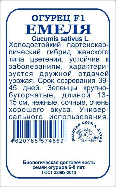Высокоурожайный партенокарпический гибрид женского или преимущественно женского типа цветения для весенних теплиц и тоннелей, а также для открытого грунта. От всходов до первого сбора плодов 39-45 дней. Зеленцы крупнобугорчатые, длиной 13-15 см, нежные, очень хорошего вкуса. Гибрид прекрасно подходит для приготовления салатов, засолки и консервирования. Характеризуется дружной отдачей урожая, повышенной холодостойкостью и устойчивостью к заболеваниям.