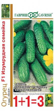 Скороспелый (40-43 дня от всходов до плодоношения) партенокарпический гибрид с букетным заложением завязей (до 5 в узле!) для выращивания в теплицах и под временными пленочными укрытиями. Растение женского типа цветения, сильнорослое, с ограниченным ростом боковых побегов, что облегчает уход и сбор урожая. Плоды цилиндрические, длиной 10-12 см, диаметром 3,5-4,0 см, массой 120-130 г, темно-зеленые с частыми бугорками среднего размера, белошипые. Гибрид устойчив к настоящей мучнистой росе, оливковой пятнистости, среднеустойчив к ложной мучнистой росе. Зеленцы отличного вкуса и универсального назначения (засолка, маринование, свежие салаты). Урожайность 14,6-15,8 кг/м2. Посев на рассаду — в конце апреля. Высадка рассады в грунт — в конце мая – начале июня в фазе 3-4 настоящих листьев. Посев непосредственно в грунт – в мае – июне. Схема посадки: 30х70 см.