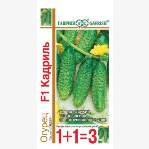 Скороспелый (43-48 дней от всходов до плодоношения) партенокарпический гибрид преимущественно женского типа цветения для выращивания в открытом и защищенном грунте, а также под временными пленочными укрытиями. Зеленец длиной 10-12 см, массой 90-100 г, частобугорчатый, белошипый, очень прочный. Гибрид отличается дружной отдачей урожая благодаря очень большим букетам завязей в узлах на главном побеге (до 8-10 штук). Использование плодов универсальное (в свежем виде, для маринования, засолки). Гибрид относительно устойчив к настоящей и ложной мучнистой росе. Отличительная особенность – холодостойкость. Урожайность одного растения 6,0-7,0 кг.