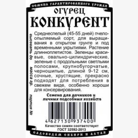 огурец Конкурент (0,3 гр Б/П)/ Деметра