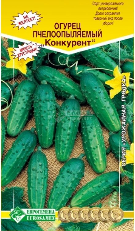 Среднеспелый сорт огурца, которому нужна помощь пчел для опыления цветков. От входов до начала плодоношения пройдет примерно 45-50 дней. Рекомендуется для культивации в открытом грунте и временных укрытиях из пленки. Зеленцы ребристые с большими бугорками, овально-цилиндрической формы. Длина составляет 9-12 см, что является классической длиной огурца, вес 70-100 г. Шипы черные, опушение частое. Кожица зеленого цвета, со слабо выраженными светлыми полосками, мякоть хрустящая, ароматная и плотная. Сорт имеет высокую устойчивость к мучнистой росе, бактериозу, оливковой пятнистости, ложной мучнистой росе. Сорт универсального потребления. Хорош в маринадах, солениях и в свежих салатах.