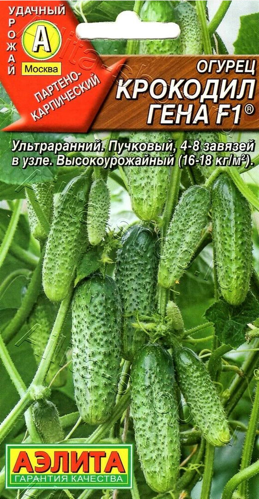 Ультраранний партенокарпический гибрид для пленочных теплиц. Первые плоды собирают на 36-42 день от всходов. На растении одновременно наливается 20-30 плодов; в каждом узле формируется по 4-8 завязей. Зеленцы крупнобугорчатые, белошипые, массой 90-100 г, отличного вкуса. Подходят для консервирования. Гибрид устойчив к корневым гнилям, МР и ЛМР. Урожайность высокая – 16-18 кг/м 2.