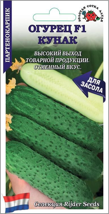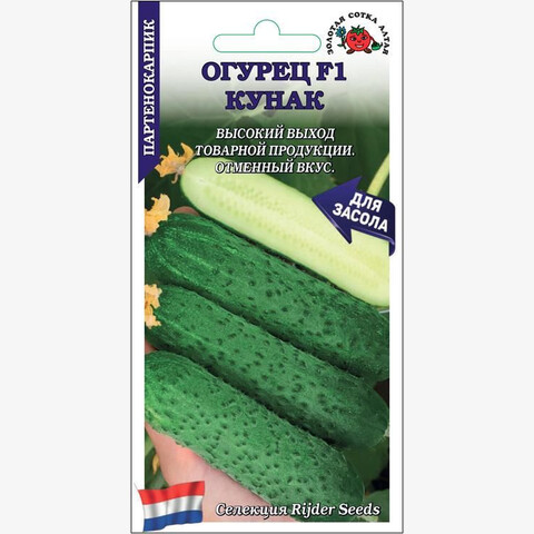 Среднеранний партенокарпический гибрид с отличной урожайностью и высоким выходом товарной продукции. Срок созревания 39-41 день. Зеленцы красивые, темно-зеленые, цилиндрической формы, бугорчатые, массой 100-120 г, плотные и сочные, не перерастают, обладают отменными вкусовыми качествами и хорошо переносят транспортировку на дальние расстояния. Гибрид используется в свежем виде, прекрасно подходит для приготовления соленых, маринованных и малосольных огурчиков.