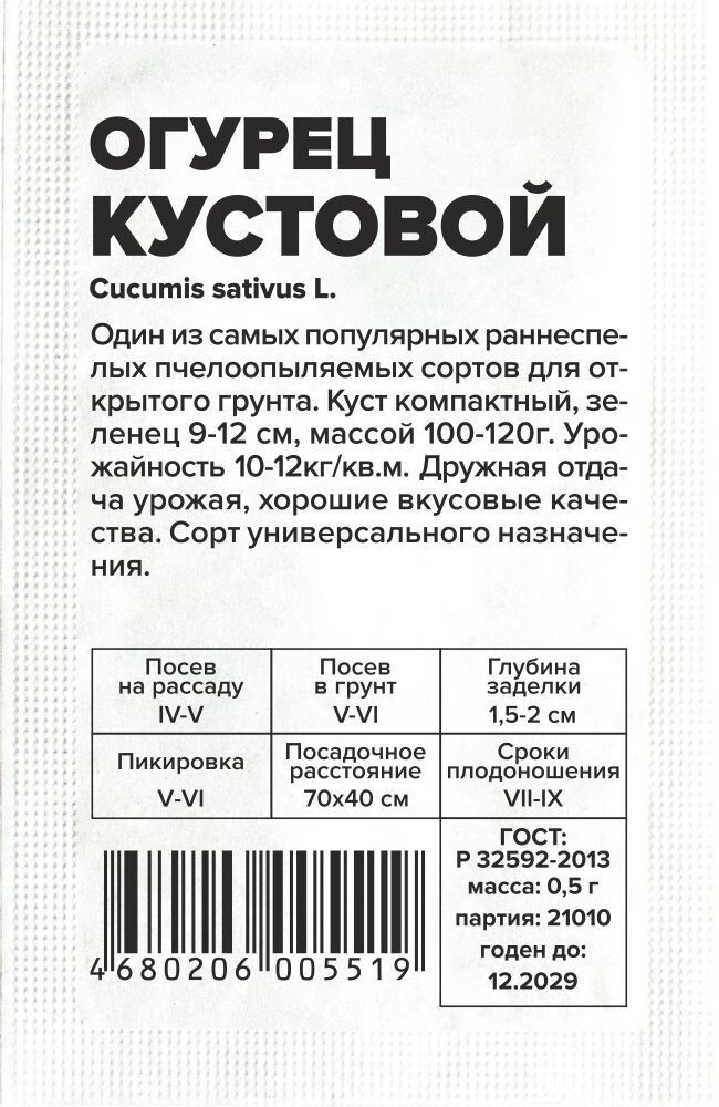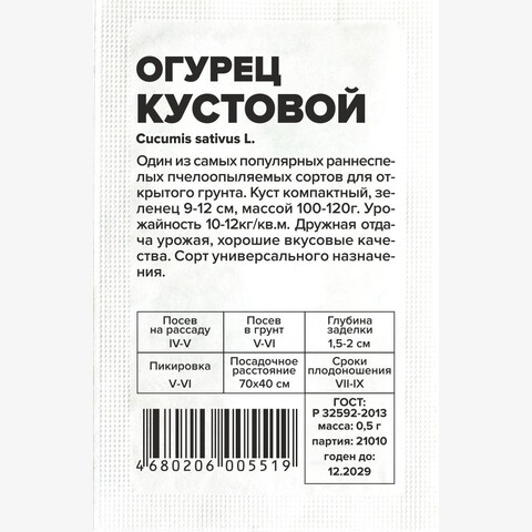 Огурец Кустовой/Сем Алт/бп 0,5 гр.