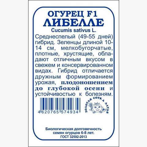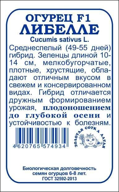 Гибрид среднеспелый. Срок созревания 49-55 дней. Зеленцы мелкобугорчатые, длиной 10-14 см, плотные, хрустящие, не желтеют, обладают отличным вкусом в свежем и консервированном видах. Гибрид отличается дружным формированием урожая, плодоношением до глубокой осени и устойчивостью к комплексу заболеваний.
