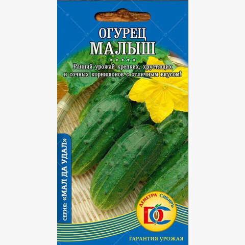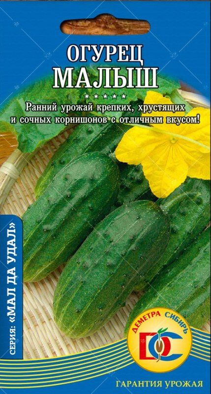 Ультраранний, высокоурожайный сорт, для открытого грунта. Растение кустовое. Зеленцы темно-зеленые, эллипсовидной формы, крупнобугорчатые, с белым опушением, длиной до 10 см. Вкусовые качества отличные. Используют для приготовления салатов, засолки и консервирования.