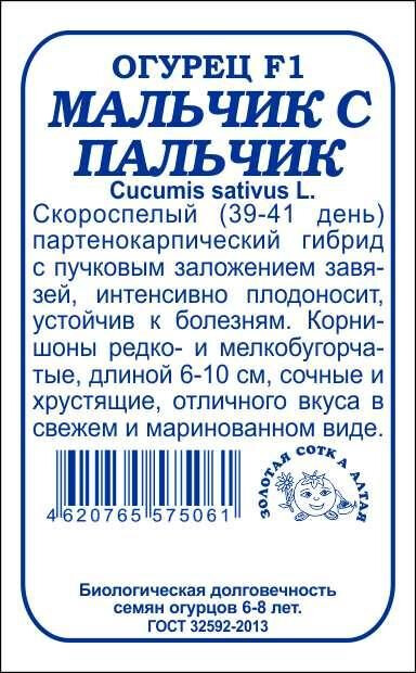 • Скороспелый партенокарпический гибрид. В плодоношение вступает на 39-41 день. Растение сильнорослое, среднеплетистое, женского типа цветения, с пучковым заложением завязей. Корнишоны редко- и мелкобугорчатые, длиной 6-10 см, зеленые с короткими слабовыраженными полосами, сочные, хрустящие, обладают отличным вкусом в свежем и консервированном виде. Гибрид отличается интенсивным плодоношением и устойчивостью к болезням.
