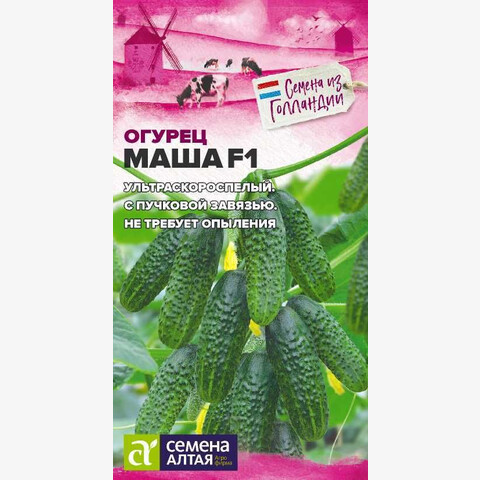 Ультраскороспелый, с пучковой завязью, вступающий в плодоношение на 39-41 день, раньше других партенокарпических гибридов. Корнишоны зеленые, крупнобугорчатые, с небольшой семенной камерой, формируются по 5-6 в узле. Высокие вкусовые качества и дружное созревание. Выращивается в открытом и защищенном грунте, устойчив к комплексу болезней. Место посадки: предпочитает плодородные рыхлые нейтральные почвы. Размещают после капусты, лука, бобовых. Не рекомендуется сеять после других растений семейства тыквенных (тыква, огурец, кабачок, арбуз) Освещение: обильное, переносит легкое затенение Предпосевная подготовка: семена замачивают в 0,5% растворе марганцовки на 15 минут. Допускается предварительное проращивание во влажной ткани или посев сухими семенами без подготовки. Инкрустированные (цветные) семена сеют сухим способом, без замачивания и подготовки Сроки посева: на рассаду за 20-25 дней до высадки (апрель-май), в открытый грунт после прогревания почвы до 15..18°С на глубине 15 см (май-июнь) Посев на рассаду: семена раскладывают на выровненный уплотненный теплый очень влажный грунт в рассадные ящики или индивидуальные емкости объемом 0,5 л. Присыпают слоем почвы 0,8-1 см и хорошо уплотняют, аккуратно поливают теплой водой, накрывают пленкой. Пророщенные семена присыпают рыхлым грунтом без уплотнения Посев в грунт: высевают, когда почва прогреется до 15-20°С. Семена раскладывают на уплотненной и хорошо увлажненной почве, заделывают землей на глубину 1,5-2,0 см, хорошо увлажняют, уплотняют и накрывают пленкой Пикировка/перевалка: в остекленные или пленочные теплицы, тоннели высаживают 20-25-дневную рассаду, имеющую 3-5 настоящих листьев. Схема посадки 70х40 см с использованием шпалер Уход: почва под растениями всегда должна оставаться увлажненной. Подкормки проводят при наличии симптомов дефицитов питания. При выращивании в теплице необходимо обеспечивать проветривание. Не требуют формировки