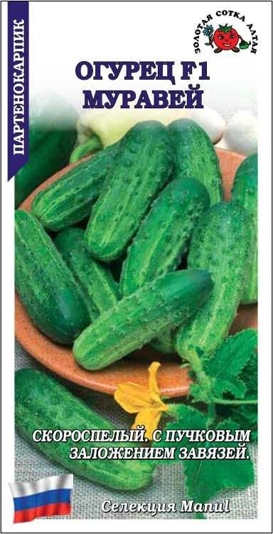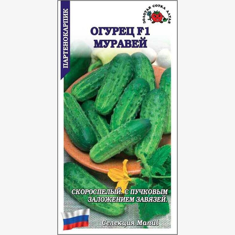 Скороспелый партенокарпический гибрид. От всходов до начала плодоношения 37-38 дней. Растение среднерослое, слабоветвистое, женского типа цветения, формирует до 5-7 завязей в каждом узле. Зеленцы крупнобугорчатые, овальной формы, длиной 8-11 см, плотные, хрустящие, сочные, без горечи, с ярко выраженным ароматом. Гибрид характеризуется высокой урожайностью и устойчивостью к болезням, великолепен в свежем виде, идеален для маринования и засола.