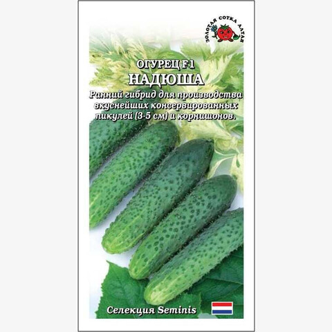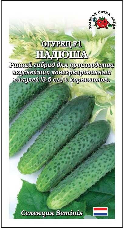 Ранний гибрид салатного и консервного назначения, рекомендованный для возделывания в открытом грунте в расстил. Растение среднерослое, преимущественно женского типа цветения. Зеленцы бугорчатые, цилиндрические, коротенькие, массой 60-65 г, однородные, плотные и хрустящие, великолепного вкуса, используются в свежем виде и для консервирования в малообъемной таре. Гибрид дает высокий выход товарной продукции, хорошо подходит для производства пикулей (3-5 см) и корнишонов (5-9 см).