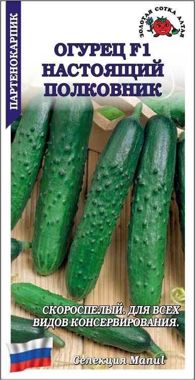 • Скороспелый партенокарпический гибрид, устойчивый к ряду заболеваний. От всходов до плодоношения 40-42 дня. Растение сильнорослое, средневетвистое, женского типа цветения с дружной отдачей урожая. Зеленцы веретеновидные, длиной 12-15 см, зеленые с полосами средней длины, бугорки среднего размера, редкие. Мякоть сочная, нежная и ароматная. Гибрид великолепно подходит как для непосредственного потребления и приготовления салатов, так и для всех видов консервирования.