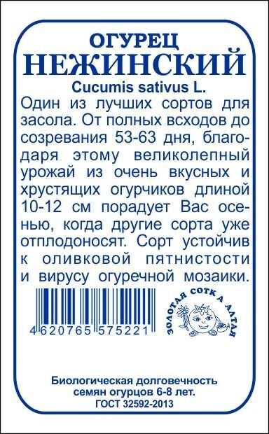 Один из лучших сортов для засола. От полных всходов до созревания 53-63 дня, благодаря этому великолепный урожай из очень вкусных и хрустящих огурчиков длиной 10-12 см порадует Вас осенью, когда другие сорта уже отплодоносят. Сорт устойчив к оливковой пятнистости и вирусу огуречной мозаики.