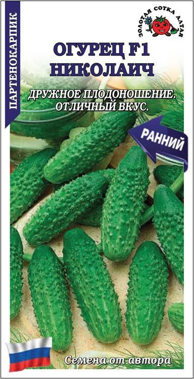 Высокоурожайный партенокарпический гибрид раннего срока созревания для выращивания в пленочных теплицах, парниках и открытом грунте. Растение средневетвистое, преимущественно женского типа цветения, с пучковой завязью. Корнишоны коротенькие и аккуратные, цилиндрической формы, среднебугорчатые, массой 60-70 г, нежные и сочные, отличного вкуса, без горечи. Гибрид ценится за дружное плодоношение, идеально подходит для свежего потребления, маринования и засола.