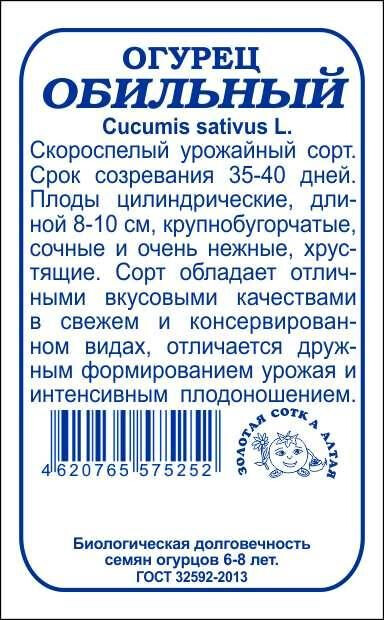 Скороспелый урожайный сорт. От всходов до начала плодоношения 35-40 дней. Зеленцы темно-зеленый со светло-зелеными полосами, крупнобугорчатые, цилиндрической формы, длиной 8-10 см, сочные, очень нежные, хрустящие. Сорт обладает отличными вкусовыми качествами в свежем и консервированном видах. Отличается дружным формированием урожая и интенсивностью плодоношения.