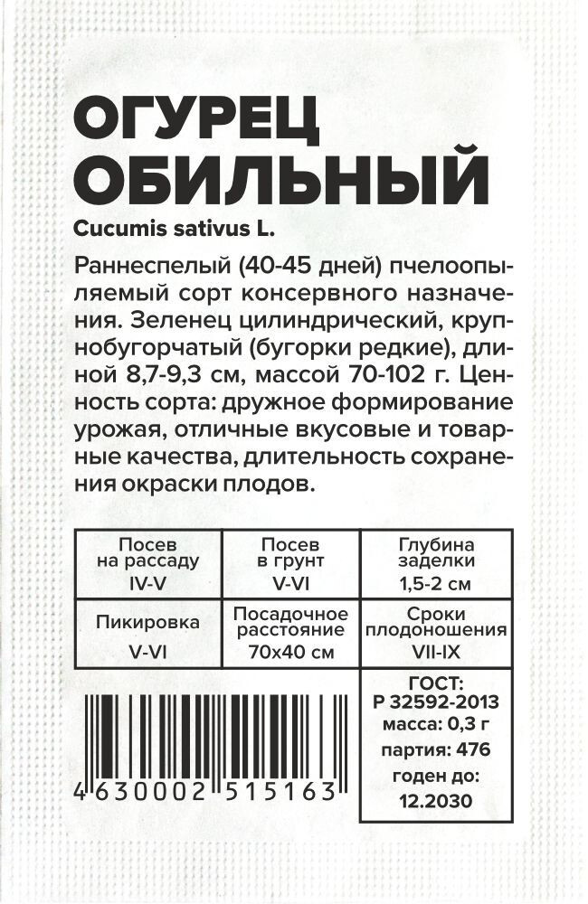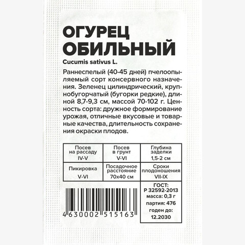 Огурец Обильный/Сем Алт/бп 0,5 гр.