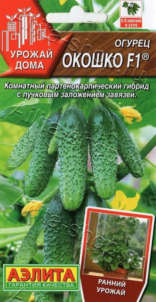 Специальный партенокарпический гибрид для подоконника и балкона. Скороспелый, первые огурчики вы получите через 41-43 дня от всходов. Главный стебель сильнорослый, боковое ветвление средней интенсивности. Завязи закладываются пучками, по 5-8 шт. в пазухе каждого листа. В технической спелости зеленцы достигают длины 11-14 см и массы 100-120 г. Но доводить их до таких размеров в комнатных условиях не нужно. Убирайте корнишонами (7 см) или даже пикулями (5 см). Тогда плодоношение будет более активным, т.к. налив зеленцов в пучках происходит не одновременно, а последовательно. Гибрид успешно растет в теплицах и о/г. С одного растения под пленкой можно получить 6-8 кг зеленцов.