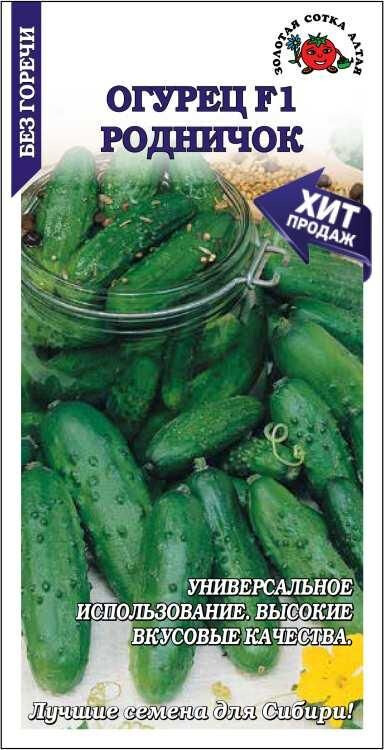 Среднеранний гибрид для открытого грунта и теплиц. От всходов до начала плодоношения 50-55 дней. Растение длинно-плетистое, в одном узле формируется 2-3 завязи. Плоды цилиндрические, слабо бугорчатые, длиной 9-10 см, высоких вкусовых качеств, без горечи. Гибрид прекрасно подходит для непосредственного потребления, приготовления салатов, засолки и маринования.