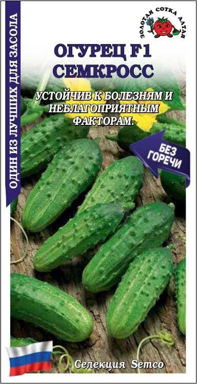 Высокоурожайный гибрид для открытого грунта и парников. Срок созревания 44-48 дней. Растение плетистое, средневетвистое, преимущественно женского типа цветения. Плоды крупно- и редкобугорчатые, длиной 8-11 см, зеленые со светлыми полосами средней длины, плотные, обладают отличными вкусовыми качествами, без горечи. Гибрид высокоустойчив к комплексу заболеваний, толерантен к неблагоприятным факторам окружающей среды. Один из лучших для всех видов консервирования.