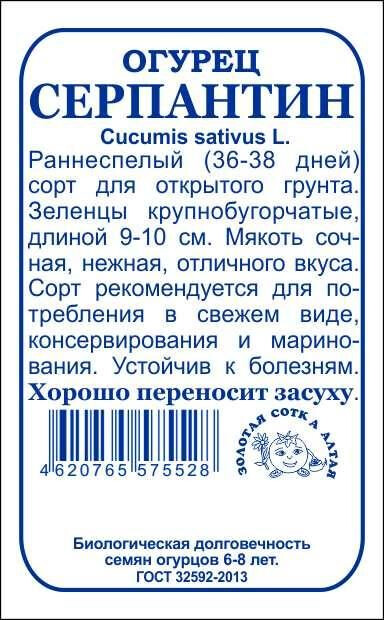 Огурец Серпантин БП/ Сотка