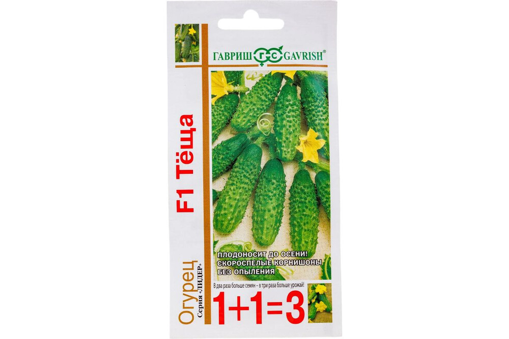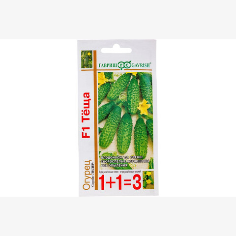 Огурец F1 Теща авторской селекции «Гавриш» стал очень популярным на отечественных огородах. Это объясняется высокими вкусовыми качествами, отличным товарным видом плодов, большая устойчивость к болезням, холоду и перепадам температуры. Зеленцы длиной 11-13 см, массой 100-120 г, бугорчатые, бурошипые, без горечи. В пазухе листа образуется до 3-4-х завязей. Ароматные плоды громко хрустят в летних салатах, а консервированные дары солнечного лета порадуют плотной мякотью и безупречной формой. Гибрид скороспелый (45-48 дней от всходов до плодоношения), партенокарпический, плавно отдает урожай весь сезон. Растение средневетвистое. Выращивают в открытом грунте и пленочных теплицах. Посев на рассаду — в конце апреля. Высадка в грунт — в конце мая-начале июня в фазе 3-4-х настоящих листьев. Посев непосредственно в грунт — в середине-конце мая. Схема посадки: 50х50 см. Семена после уборки сохраняют всхожесть в течение 7 лет при оптимальных условиях хранения. Рекомендуется увеличить норму высева по истечение срока годности.