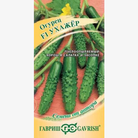 Огурец — один из любимейших овощей, отлично охлаждает в жаркое время года, принимает участие в большом количестве различных блюд и обладает массой полезных свойств. F1 Ухажер — среднепоздний (55-60 дней от всходов до плодоношения) пчелоопыляемый гибрид для выращивания в теплицах. Растение мощное, лист крупный, темно-зеленый. Зеленец длиной 18-20 см, диаметром 4,0-4,5 см, массой 180-200 г, крупнобугорчатый, белошипый, без горечи. Окраска плода темно-зеленая. Преимущественно салатного назначения. Гибрид устойчив к корневым гнилям, настоящей мучнистой росе, вынослив к ложной мучнистой росе. Урожайность одного растения 5,0-6,0 кг. Посев на рассаду — в конце апреля. Высадка в грунт — в конце мая-начале июня в фазе 3-4-х настоящих листьев. Посев непосредственно в теплицу — в середине мая. Схема посадки: 50х50 см. Семена после уборки сохраняют всхожесть в течение 7 лет при оптимальных условиях хранения. Рекомендуется увеличить норму высева по истечение срока годности.
