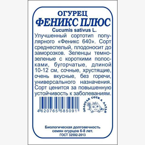 • Улучшенный сортотип популярного сорта Феникс. Среднеспелый салатный огурец с прекрасными засолочными качествами. Растение среднерослое, средневетвистое, смешанного типа цветения. Зеленцы темно-зеленые с короткими полосами, бугорчатые, длиной 10-12 см, сочные, хрустящие, очень вкусные, без горечи. Сорт ценится за повышенную устойчивость к заболеваниям и обильное плодоношение до заморозков.